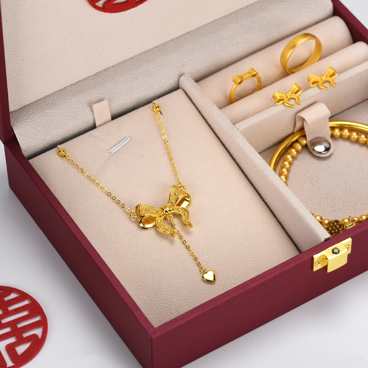 假三金首饰一套订婚仿真五金套装沙金摆件结婚摆台道具婚礼假黄金