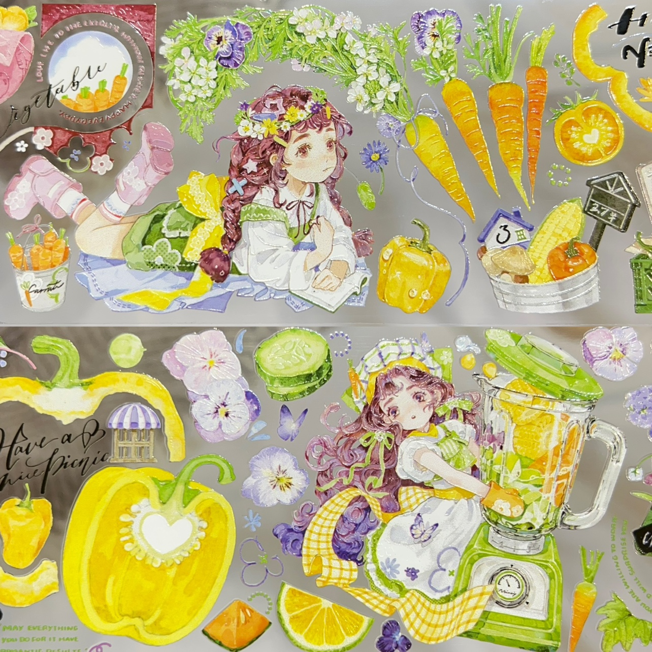 野柚分装胶带番茄沙沙鲜蔬脆脆好食盒盒一日小田园手账人物素材