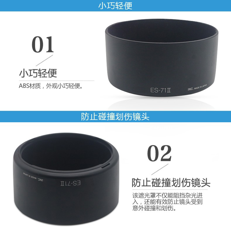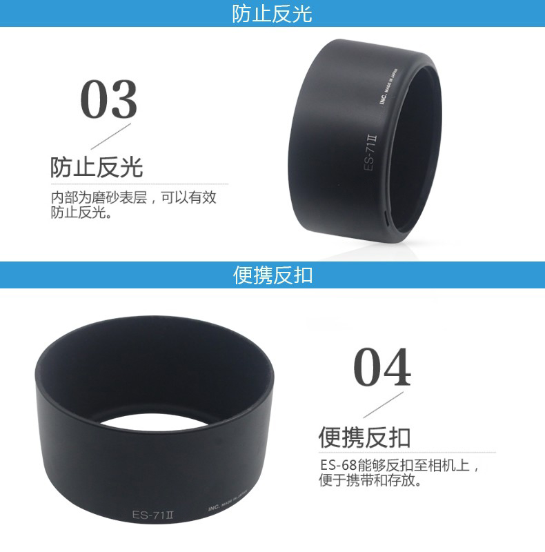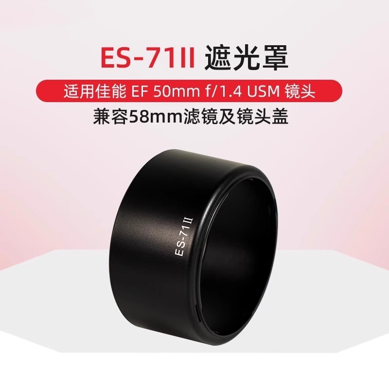 适用佳能ES-71II 遮光罩 EF 50mm f/1.4 定焦镜头 58mm可反扣5D4