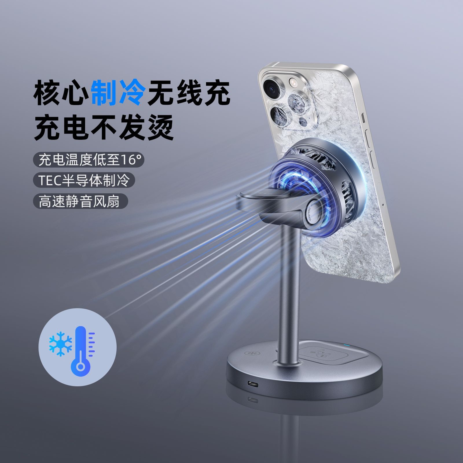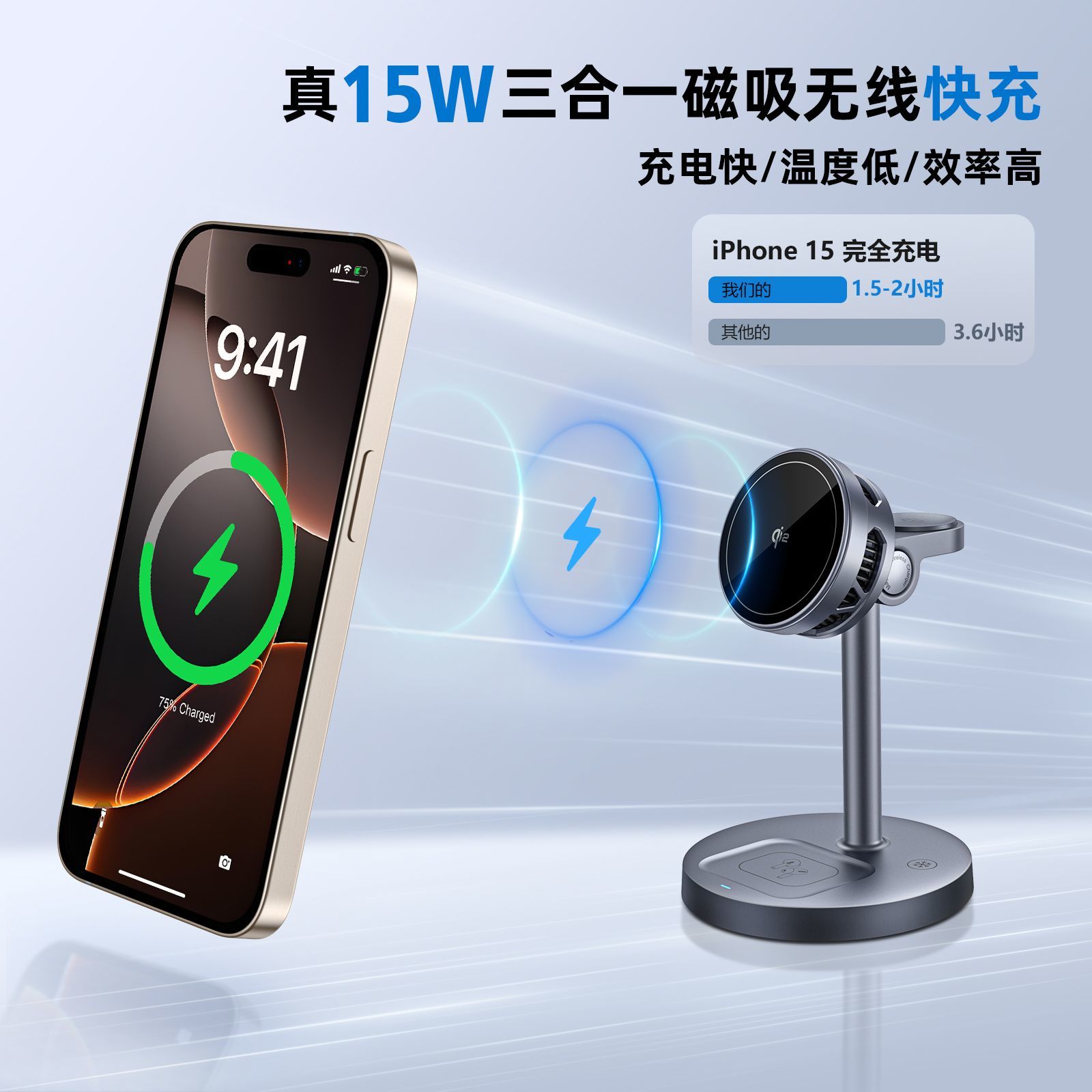 三合一半导体制冷qi2磁吸充电器支架苹果17promax手机16充电器手表iWatch耳机AirPods无线充电多功能立式底座