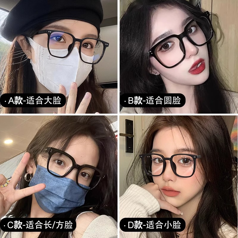 gm黑框眼镜素颜神器圆脸大框抗防蓝光平光眼睛镜框女高级感无度数