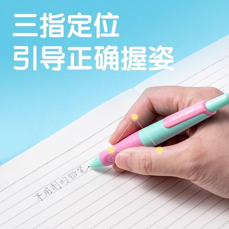 得力矫姿自动铅笔小学生用HB启蒙握笔0.9mm不易断芯免削活动铅笔不用削的自动2年级儿童宝宝练字书写姿势加粗