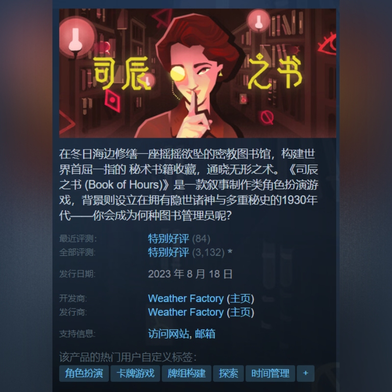 Steam正版 司辰之书 时之书 Book of Hours 全球国区激活码 CDKey
