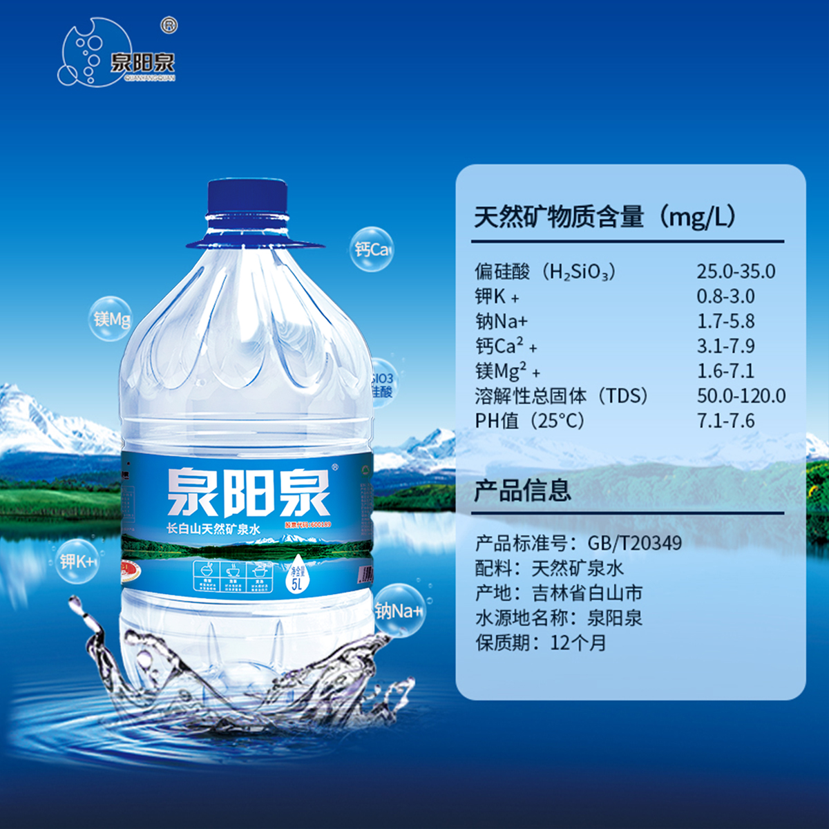 泉阳泉长白山天然矿泉水5L升大桶装家庭办公弱碱性饮用水整箱装