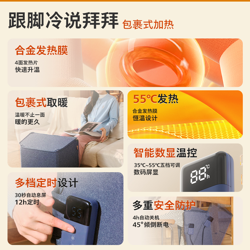 飞利浦暖脚神器电暖脚器办公室桌下暖腿热脚宝冬天保暖垫发热腿围冬季暖脚宝家用暖足暖腿捂脚保温加热脚垫套