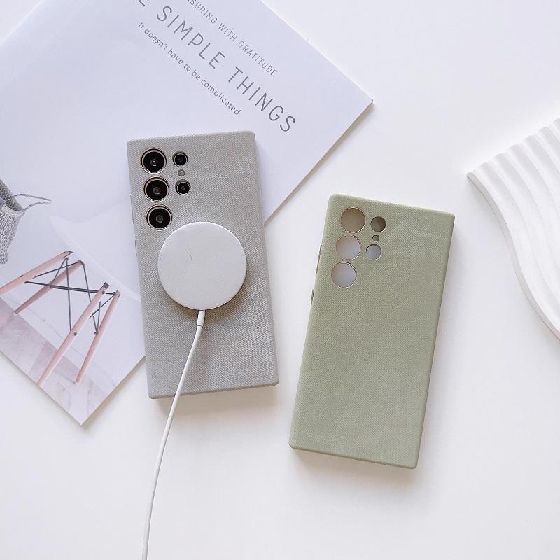 高档法兰绒内置磁吸适用三星S24ultra手机壳S23皮质布艺保护套S24+高级感s23plus简约s24个性防摔全包男女生