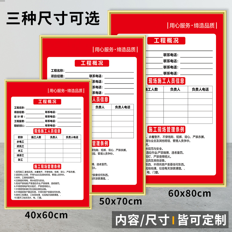 装修工地标识牌 施工现场展示牌装饰公司形象牌流程表 规范指示牌标识上墙警示牌框可定制订做