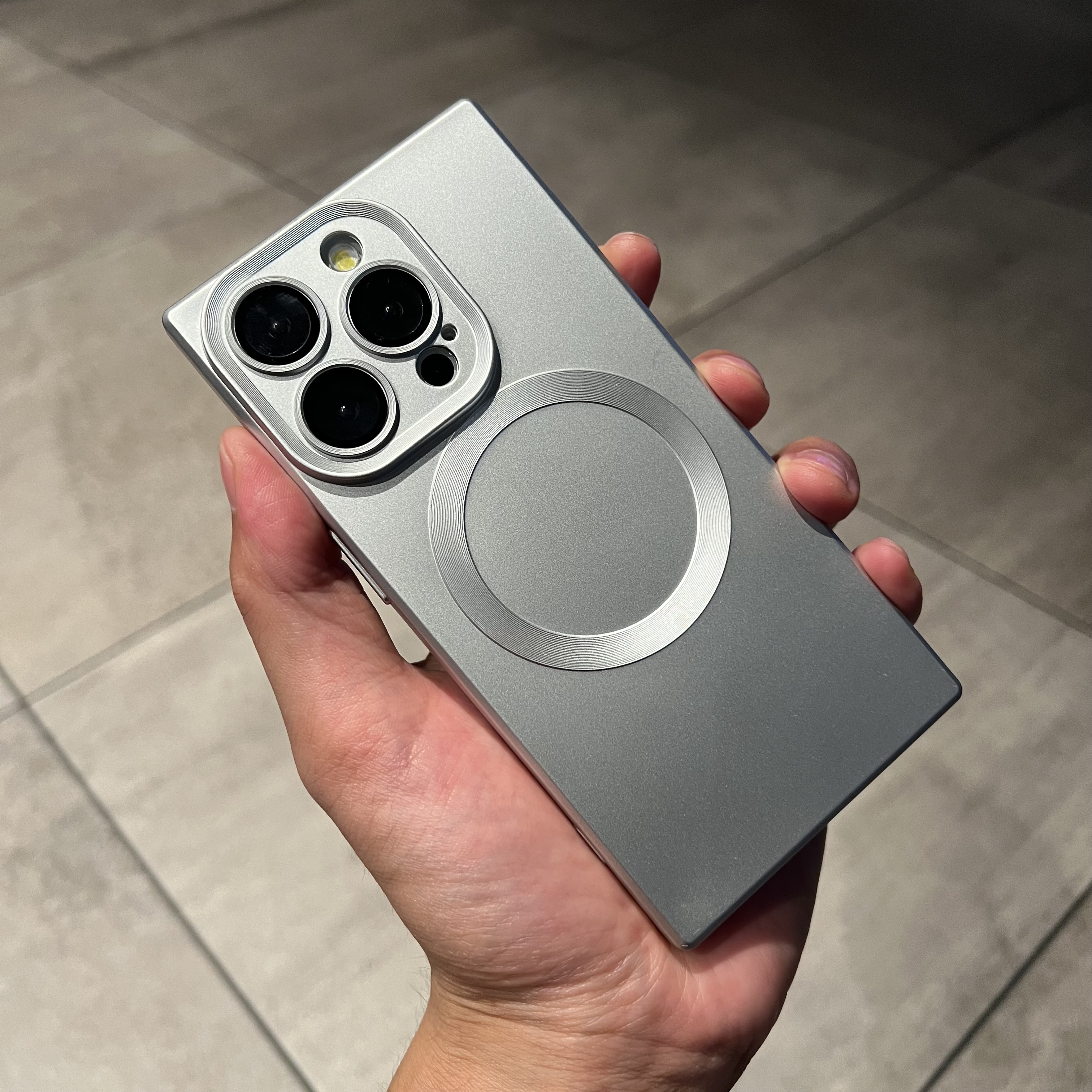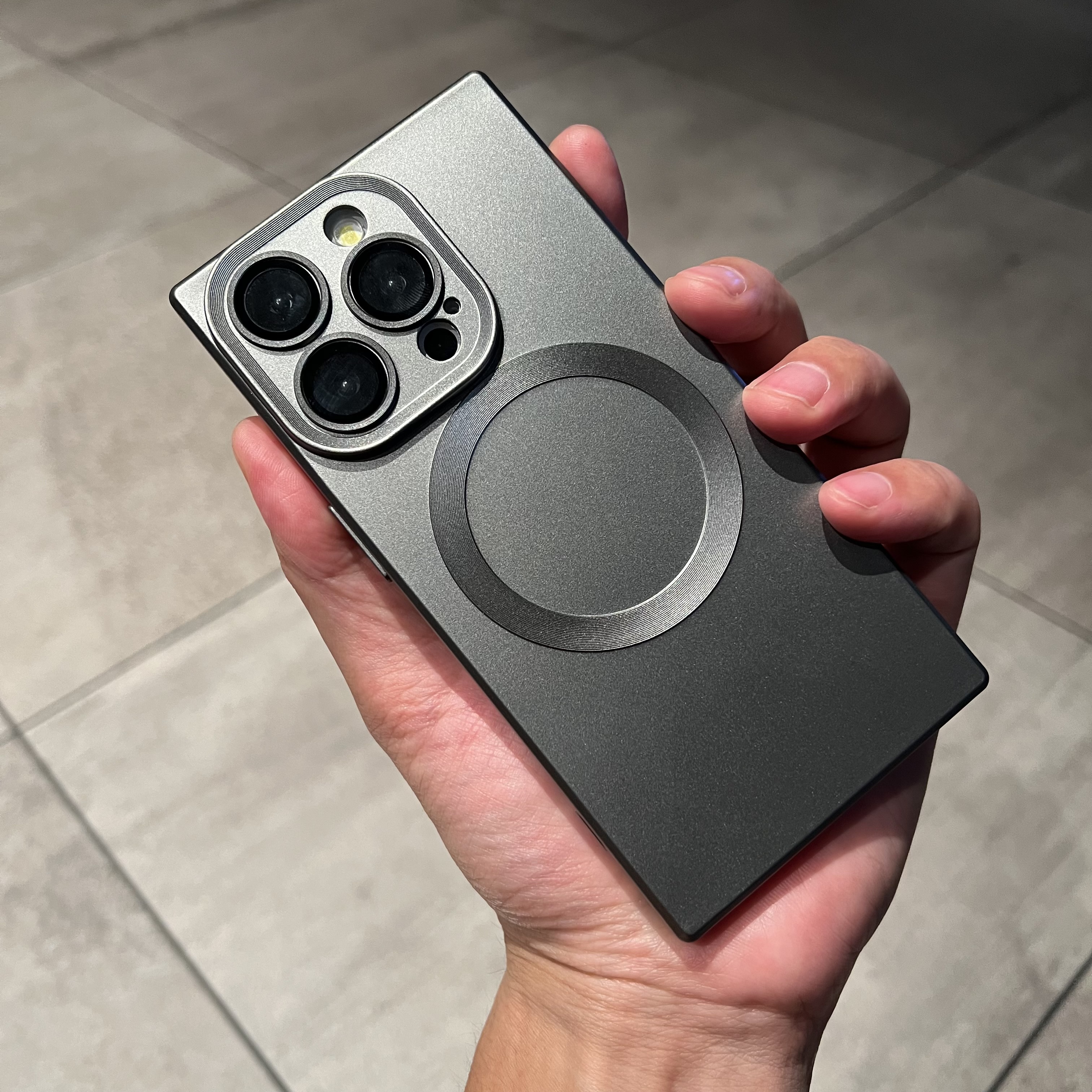 金属感正方形电镀磁吸奶奶灰太空银适用iPhone15手机壳带镜头膜苹果15promax软壳14/13pro全包防摔12硅胶11潮