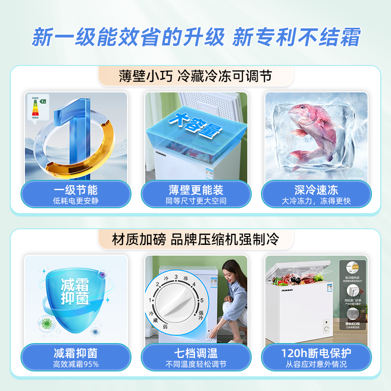 华宝一级节能小冰柜家用商用小型全冷冻冷藏两用迷你节能无霜冷柜