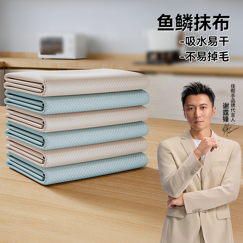 佳帮手鱼鳞抹布厨房专用百洁布无痕家用吸水不易掉毛清洁布洗碗布