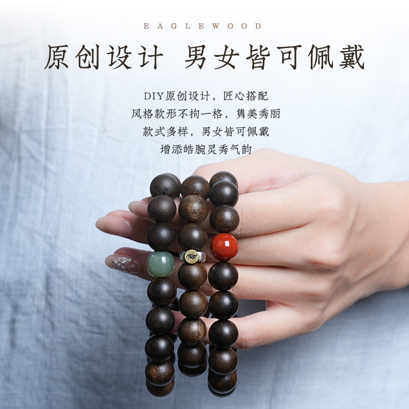 保真芽庄奇楠沉香手串男士高端熟结老料沉香木佛珠手链女九分沉水