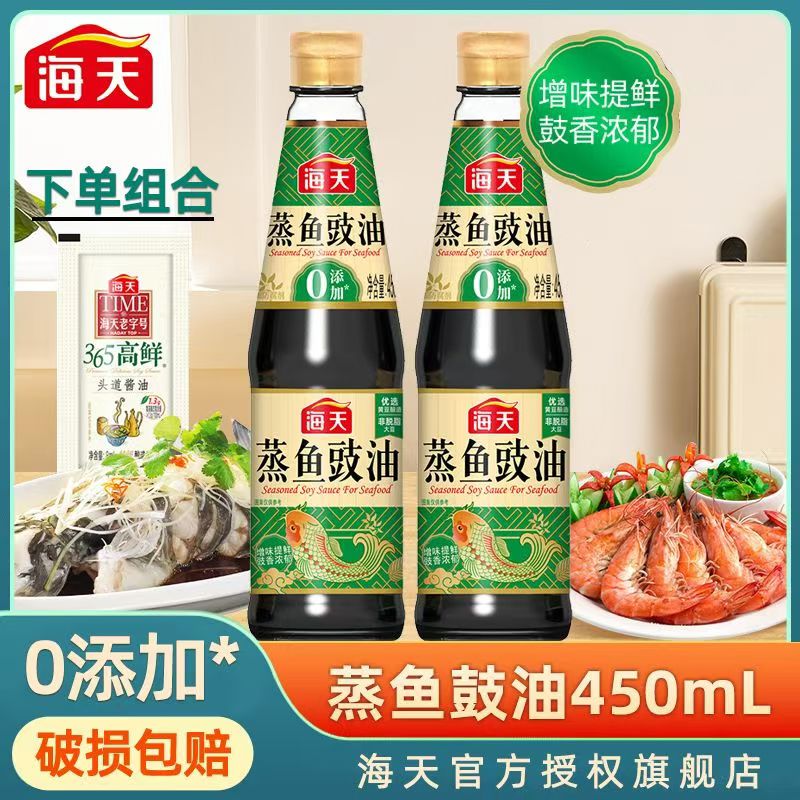 海天蒸鱼豉油450ml海鲜白灼调料酱油生抽金标清蒸鱼鲈鱼黄豆权益