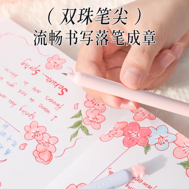 KACO浪漫樱花中性笔套装灵悦限定款POPUP侧按式按动水笔0.5学生用考试速干ST头刷题黑笔少女心蓝粉春樱签字笔