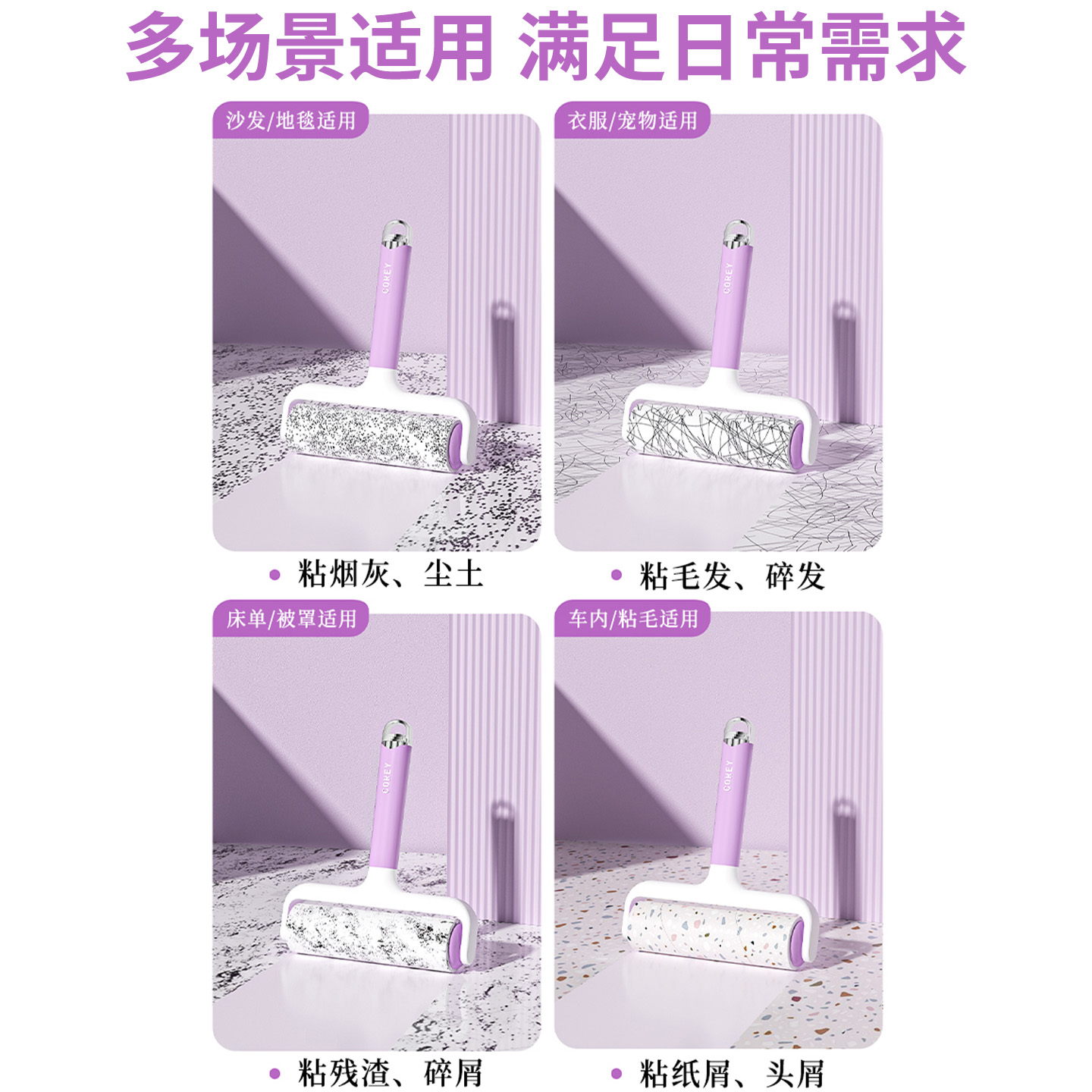 家用粘毛器滚筒可撕式替换卷纸床上头发衣服滚刷除粘猫毛清理神器