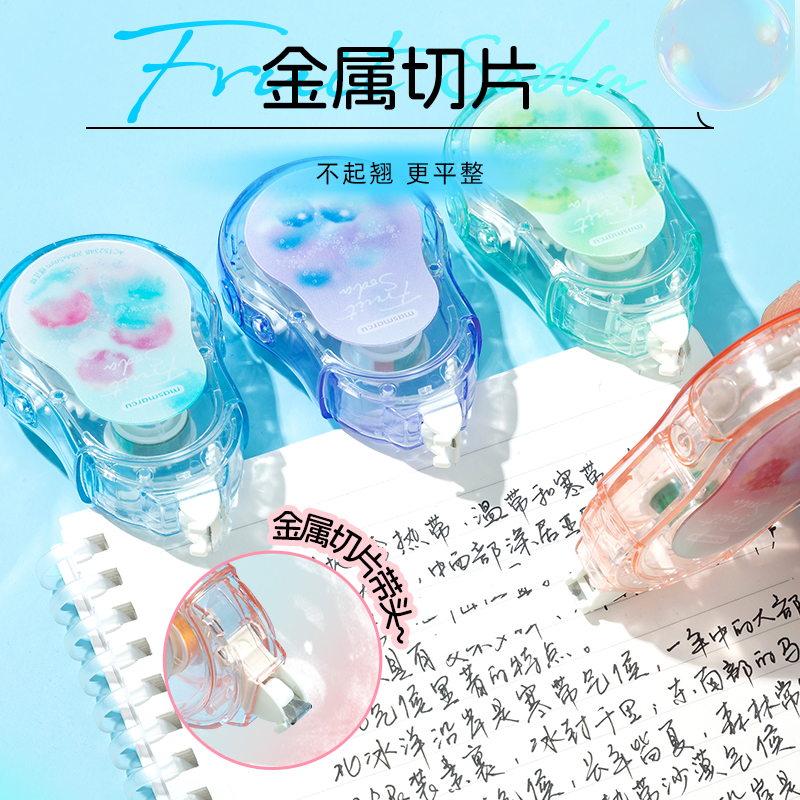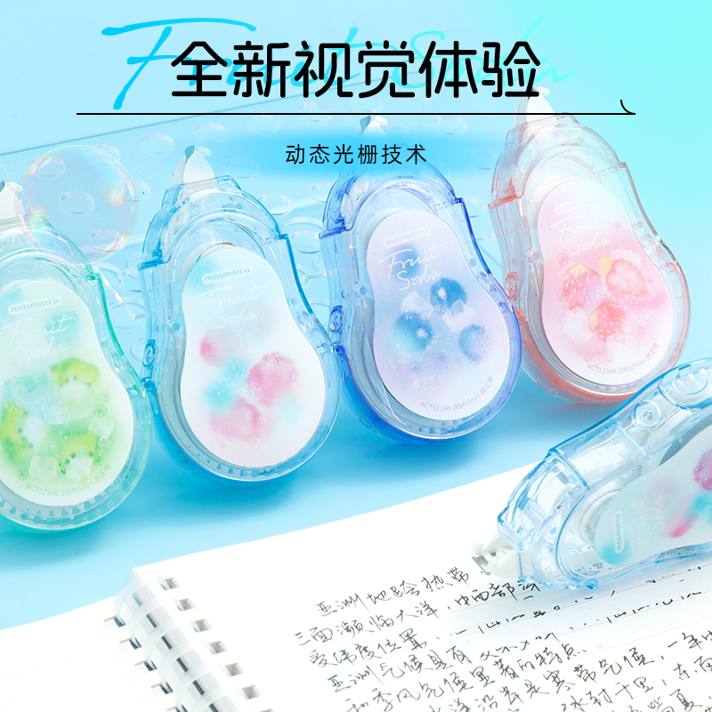 晨光masmarcu气泡果果修正带小学生大容量修改带初中生专用高颜值水果光栅顺滑流畅不易断带金属切片涂改带