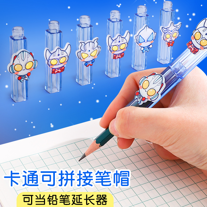 铅笔帽延长器儿童铅笔头保护套握笔器学生用笔盖卡通可爱创意接笔器加长器塑料女男孩款笔套幼儿园初学者文具