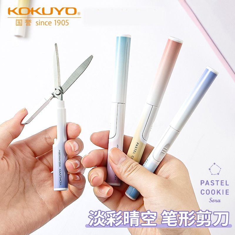 日本kokuyo国誉淡彩曲奇晴空笔型剪刀细款笔型笔式剪刀小号随身便捷小剪子中学生手工折叠剪刀小巧剪纸文具