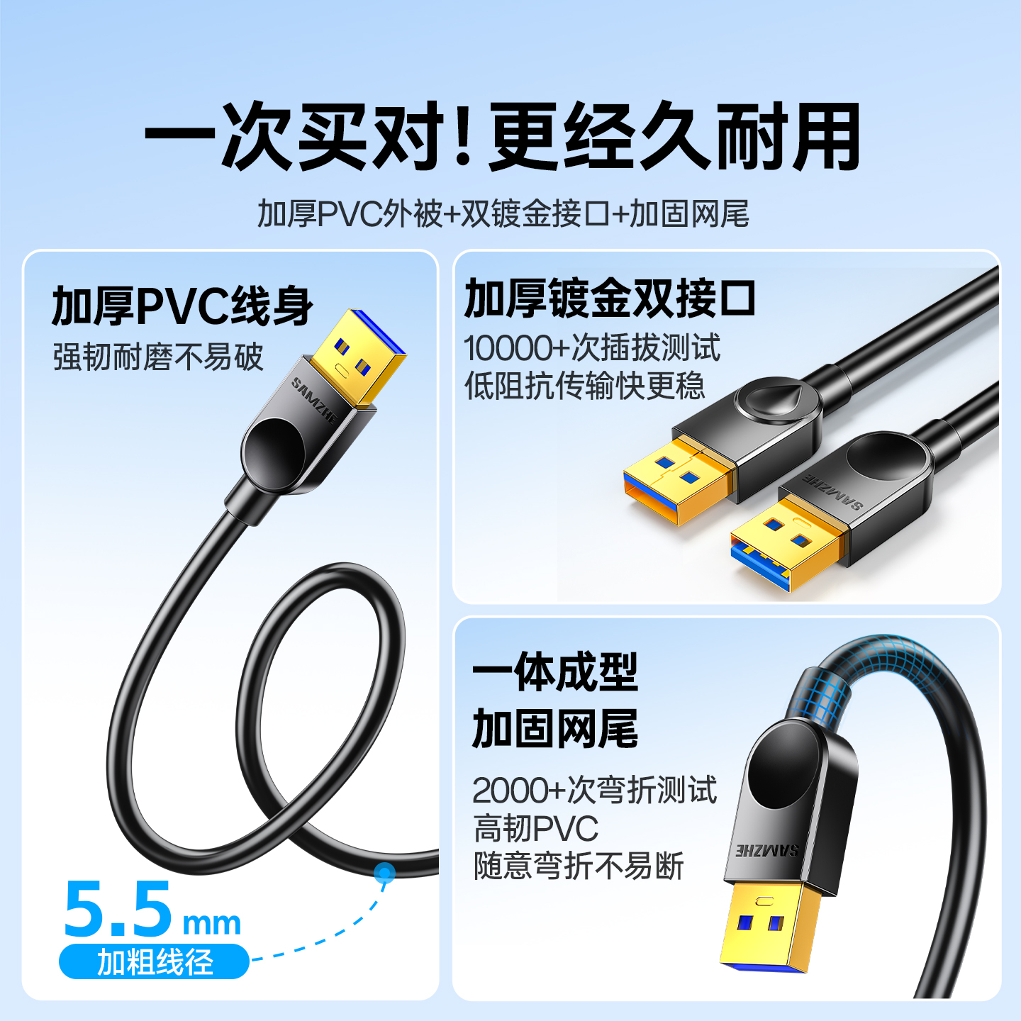 山泽双头usb数据线3.0公对公两头双公头连接线转传输移动硬盘盒笔记本电脑散热器供充电机顶盒刷机手写板车载