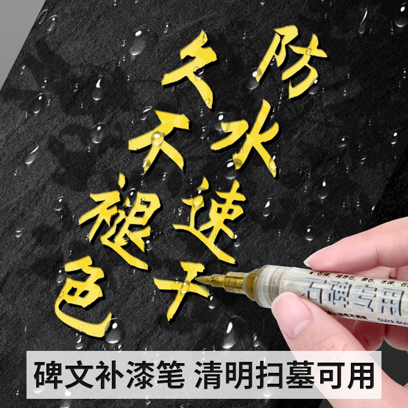 石碑碑文补漆笔清明节扫墓描碑笔描字上色笔描红笔速干软头红色金色油漆笔防水防晒墓石碑漆笔不掉色绿色银色