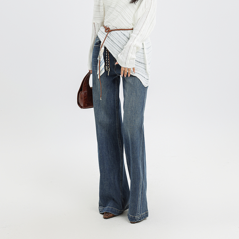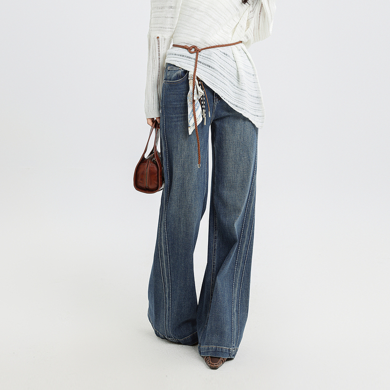 记忆的起点牛仔微喇阔腿裤2025秋季新款高腰百搭长裤子69AQ25251