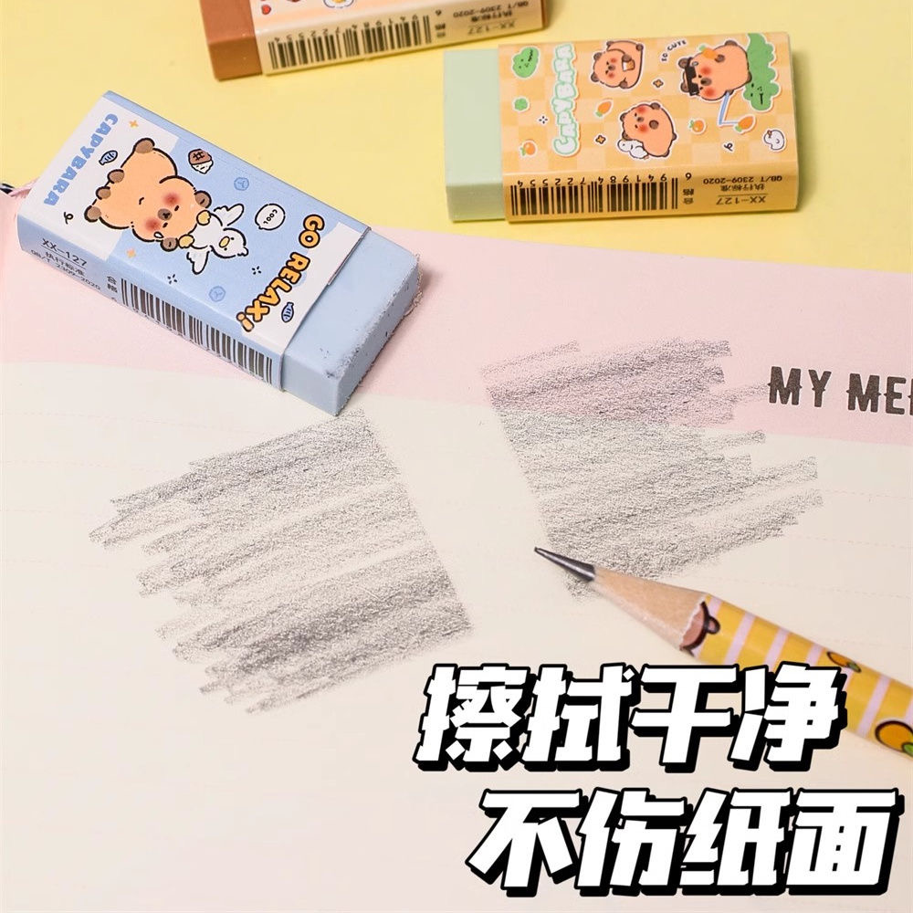 卡通卡皮巴拉橡皮擦小学生铅笔擦可爱长条橡皮无碎屑擦的干净橡皮