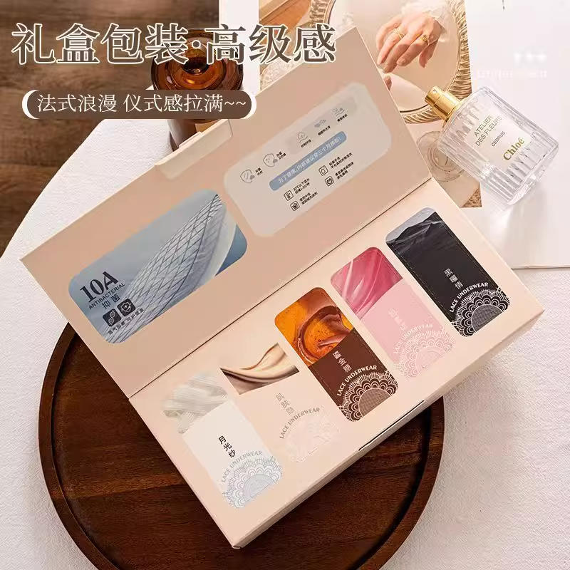 欧若风内裤女士加长裆5条礼盒装10A级宽边字母裸感中腰平角裤抗菌