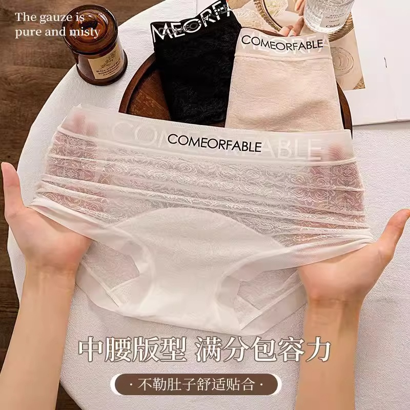 3条189元|曼妮芬性感蕾丝短裤中腰女士纯棉底裆内裤舒适低脚底裤