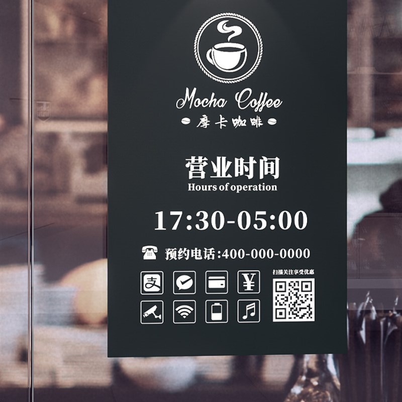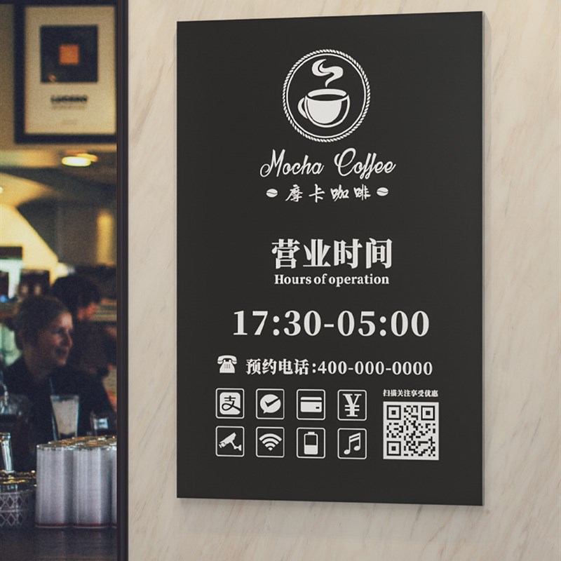 现货速发亚克力店铺营业时间玻璃告示门贴酒吧咖啡店正在营业中创