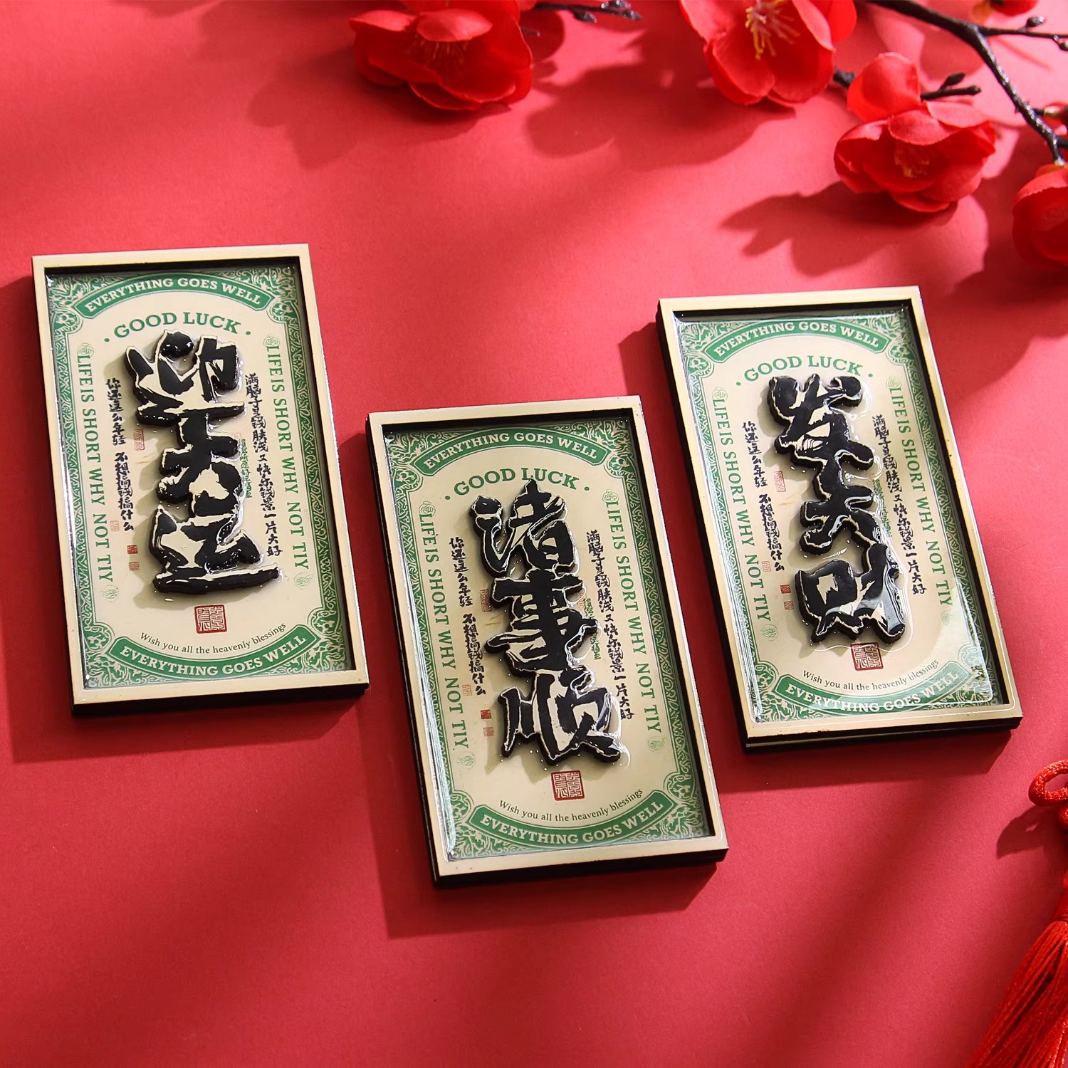 2025新款奉旨发财创意立体木质祝福文字冰箱贴诸事顺遂趣味伴手礼