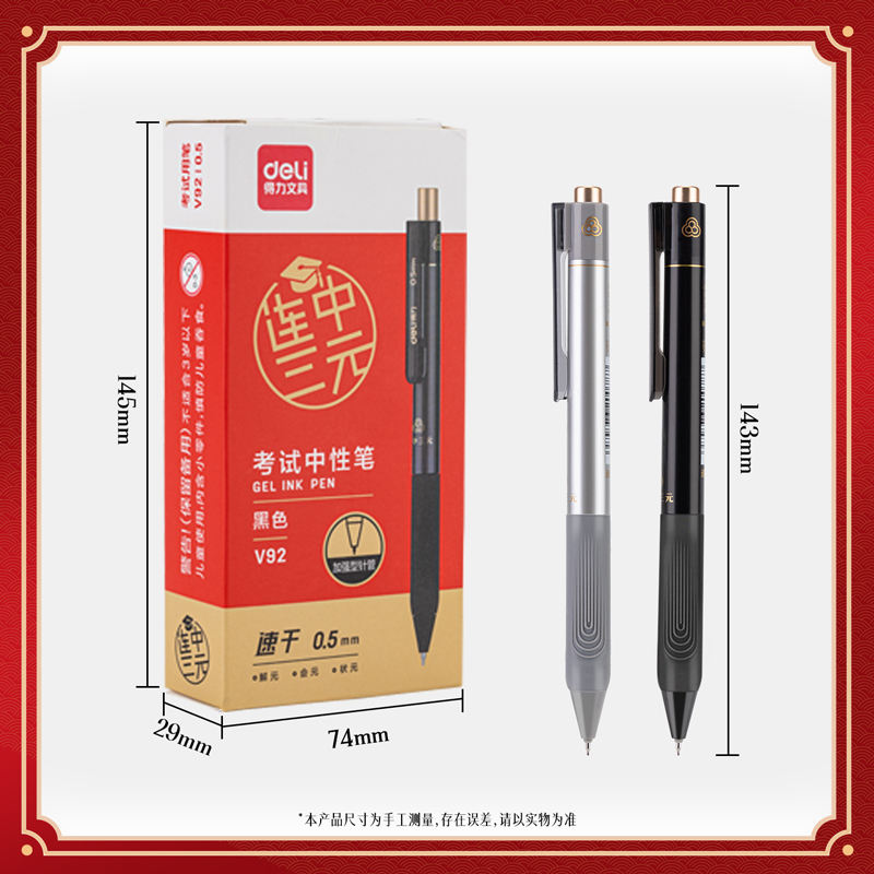 得力V92连中三元考试中性笔按动签字笔速干顺滑0.5mm加强型针管黑