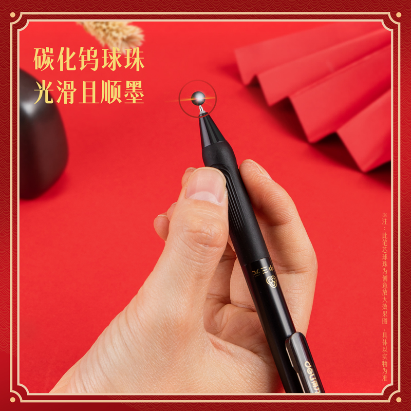 得力直液式走珠笔速干大容量直液笔0.5黑色中性笔学生用速干刷题笔水性笔直液笔圆珠笔商务办公简约风笔杆