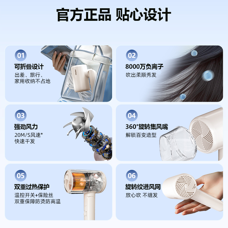 美的电吹风机折叠负离子护发速干家用专用宿舍用大风力大功率风筒