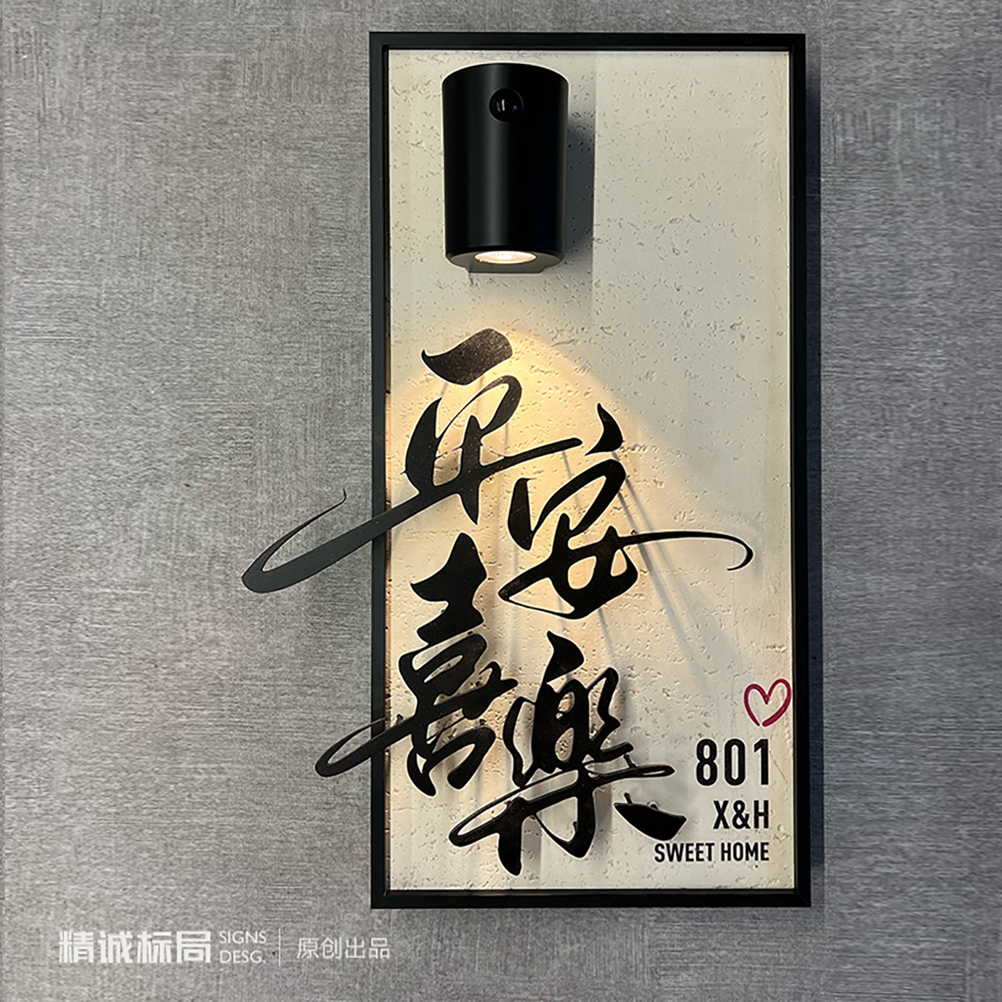 感应灯免接线包厢门牌定制酒店民宿入户门牌号手写字体设计