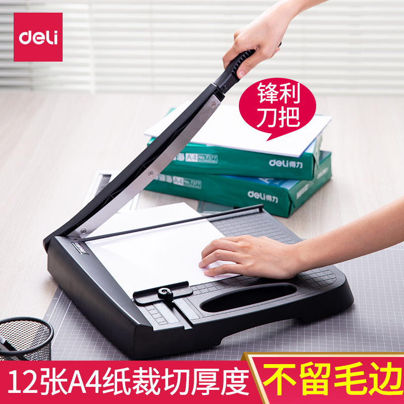 得力裁纸刀小型切纸刀切纸机a4手动裁纸机裁纸器相片刀裁剪神器名片切割机切刀切照片的闸刀钢质加厚铡刀剪刀