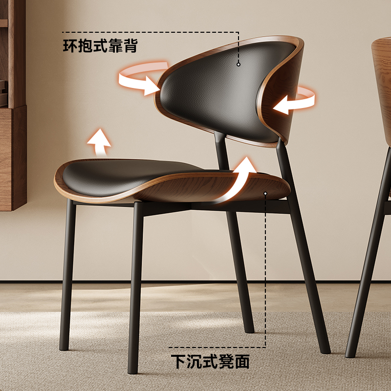意式轻奢设计师餐椅家用实木2025新款环抱式凳子中古风伊姆斯椅