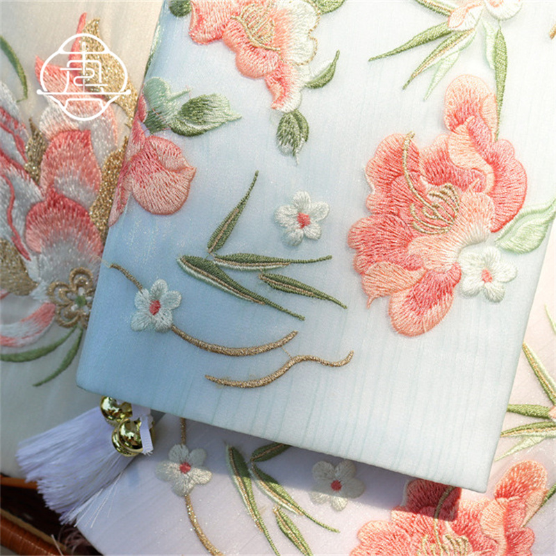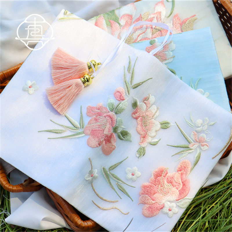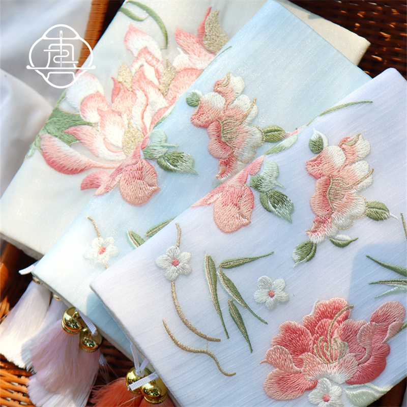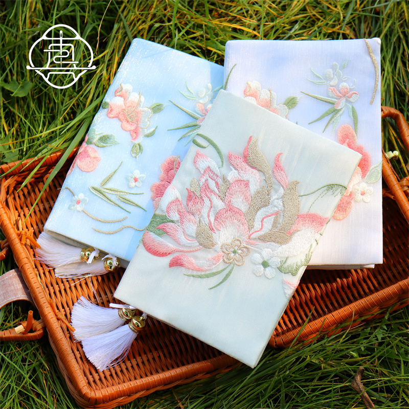 真我 芍药荷花 中式刺绣手工布书衣套装A5A6手帐本记事本封套文创