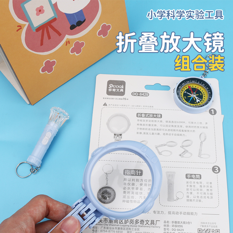 益智教学具放大镜手电筒指南针小学科学实验工具观察想象专注力