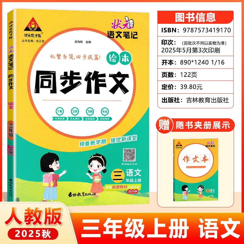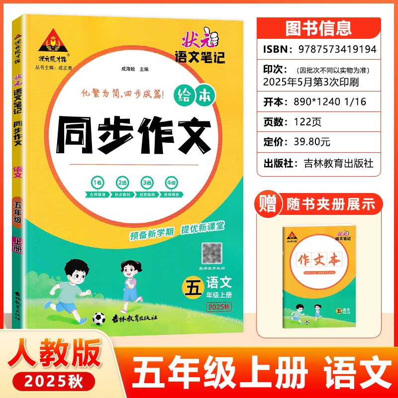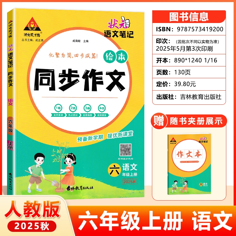 2025版状元语文笔记同步作文三四五六年级上册下册人教版小学黄冈小状元大课堂同步作文素材优秀满分作文书范文大全五感法写作技巧