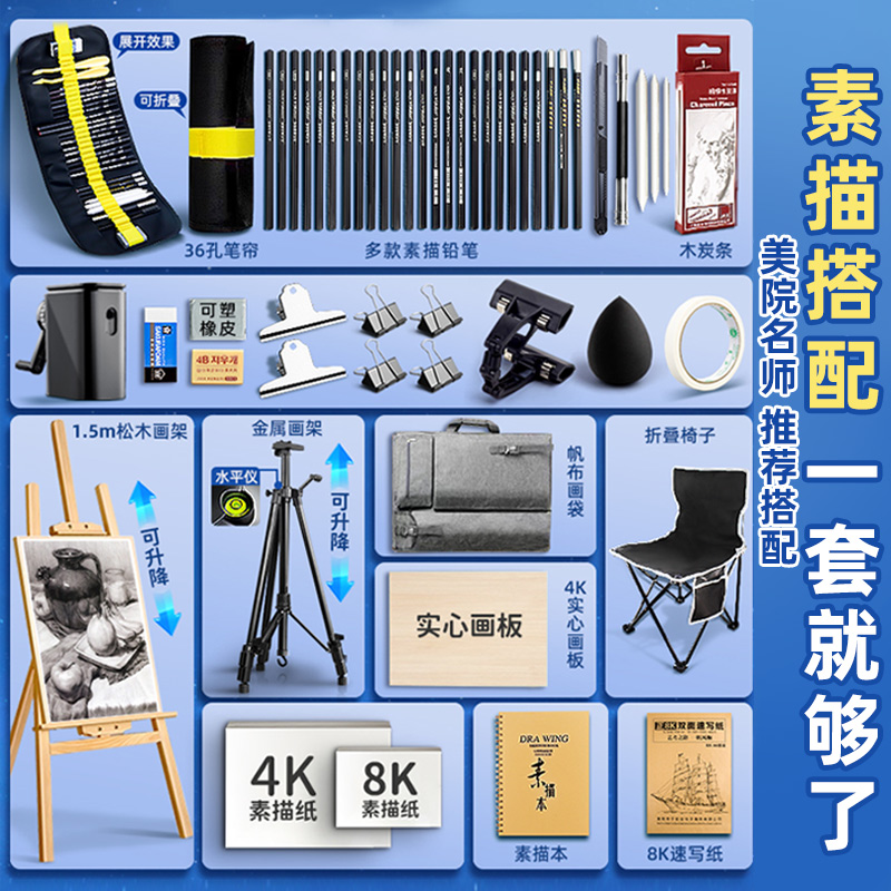 马利牌素描工具套装画板画架素描铅笔写生工具初学者美术生专用学生儿童专业画画工具套装全套画包画架支架式