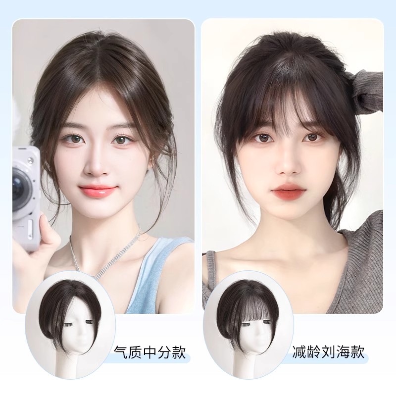 八字刘海假发假刘海假发片女片头顶增发量蓬松仿真发高颅顶遮白发