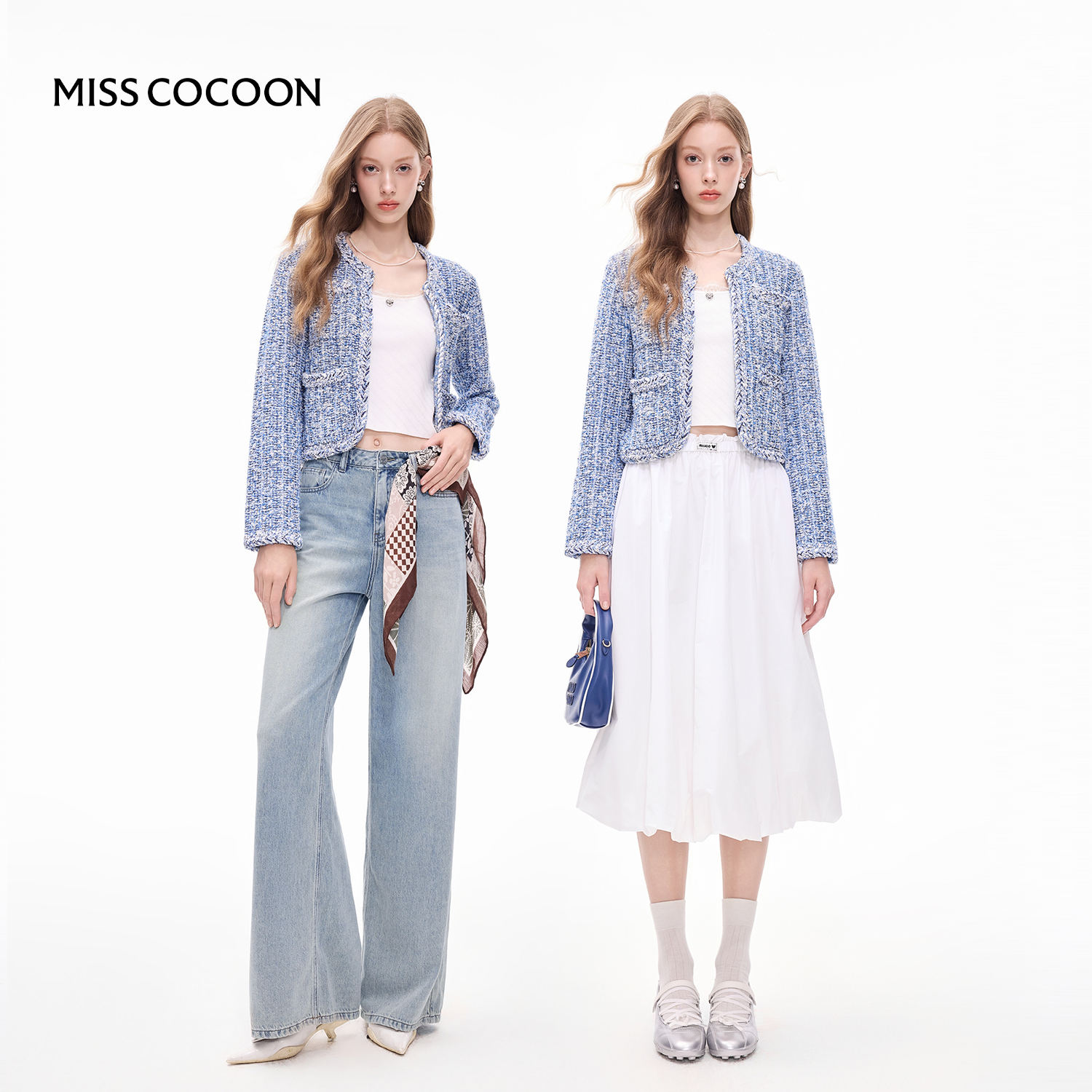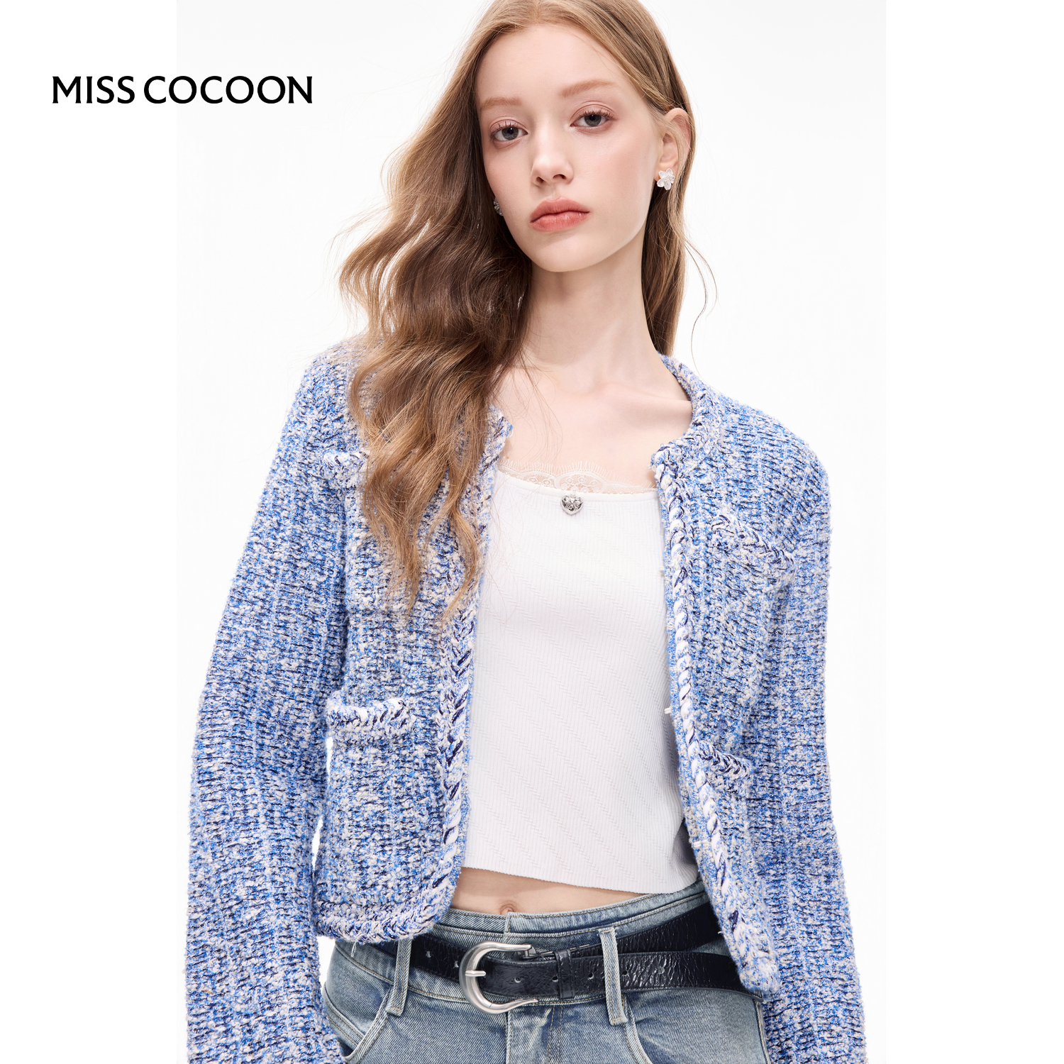 MISSCOCOON可可尼蓝色开衫女2025秋季新款千金小香风针织短外套