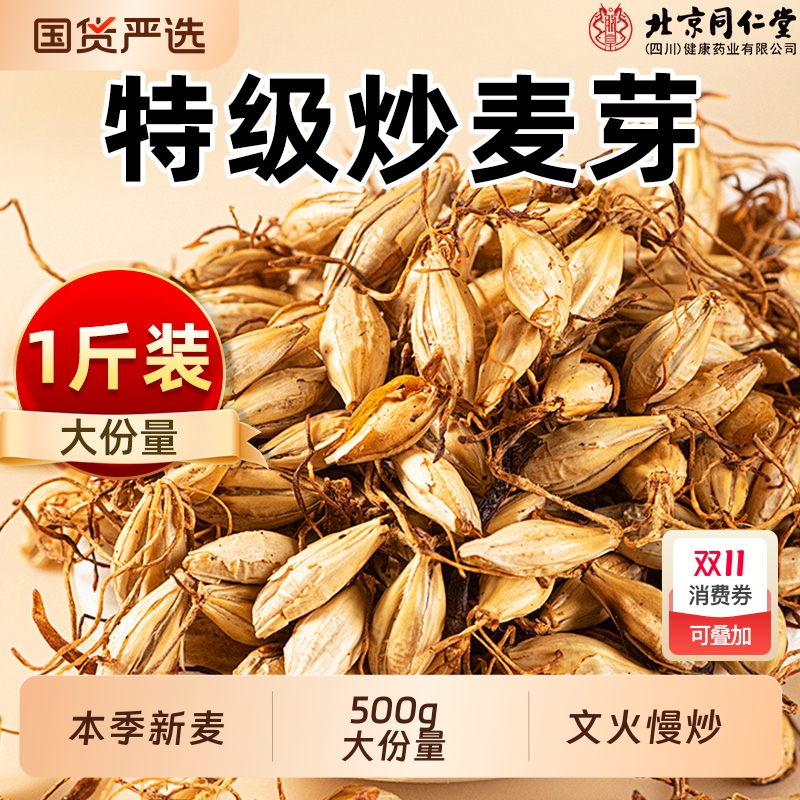 北京同仁堂炒麦芽中草药材大麦回奶茶茯苓炒麦芽熟麦芽官方旗舰店
