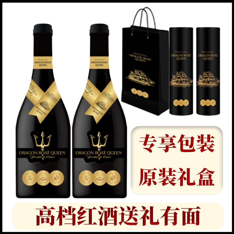 法国原装进口AOP皇后干红葡萄酒15度双支礼桶礼袋送礼装红酒