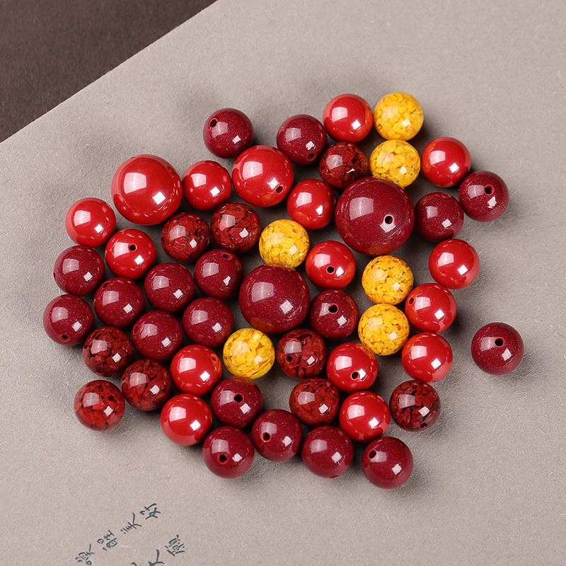 天然原矿朱砂散珠子紫金砂帝王砂高含量圆珠单颗本命年转运手链串