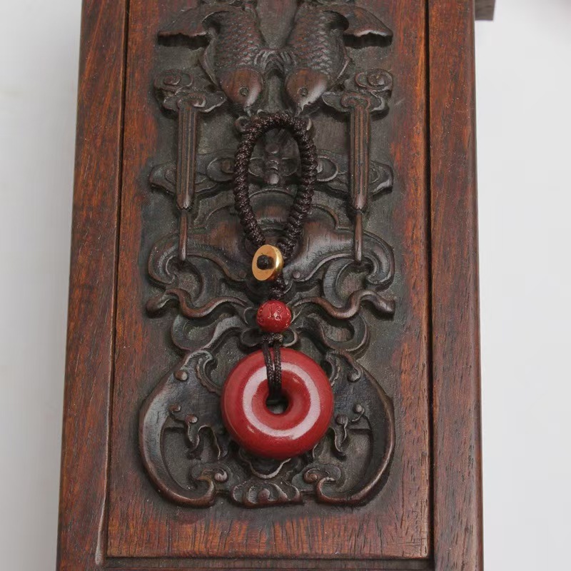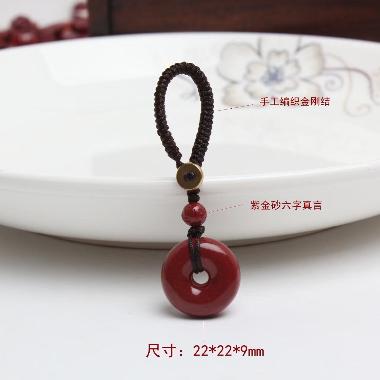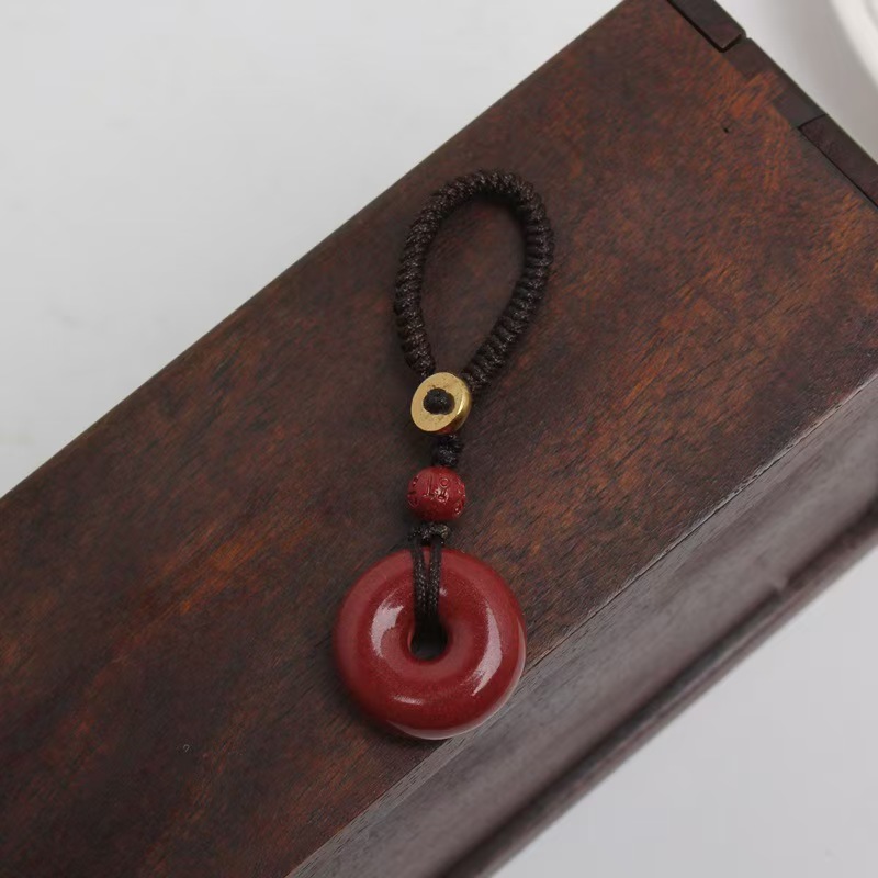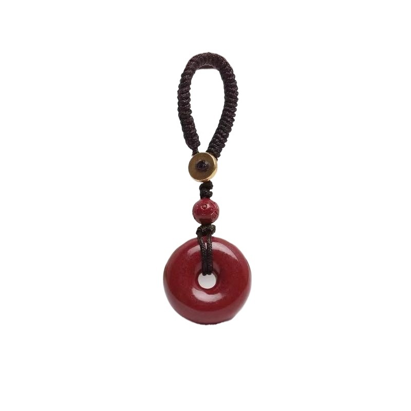 天然原矿高含量朱砂平安扣手机链挂饰绳件钥匙扣男女挂饰紫金砂