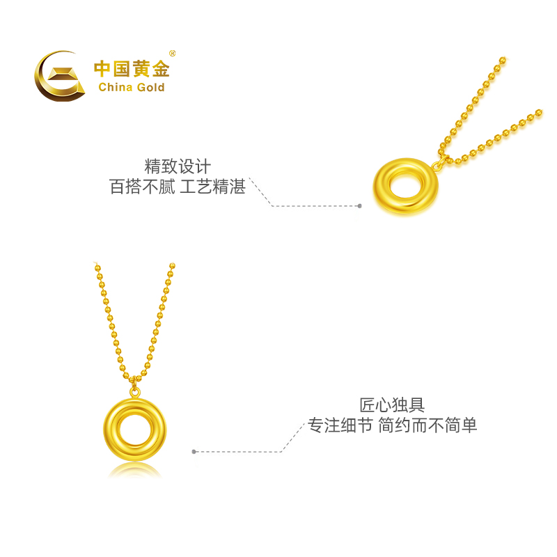 【中国黄金官方店】足金5G金甜甜圈套链时尚简约送朋友黄金