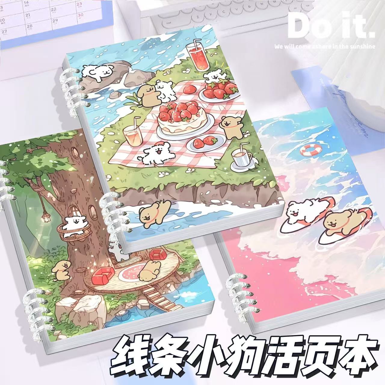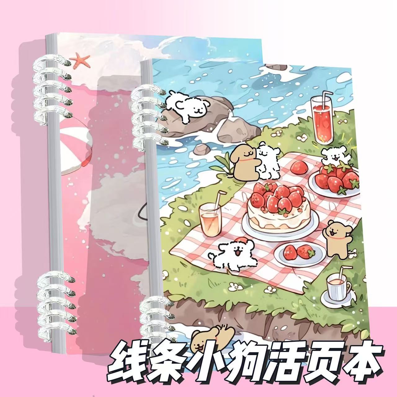 小红书同款线条小狗活页本高颜值小众线圈可拆卸加厚学生A5记事本