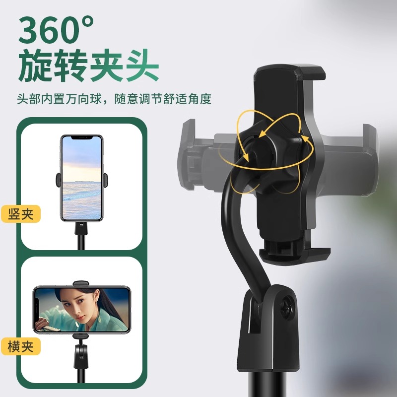 手机拍摄支架直播专用自拍杆三脚架落地式多功能支撑架通用捭机架户外便携伸缩升降网课考研复试架子三角支夹