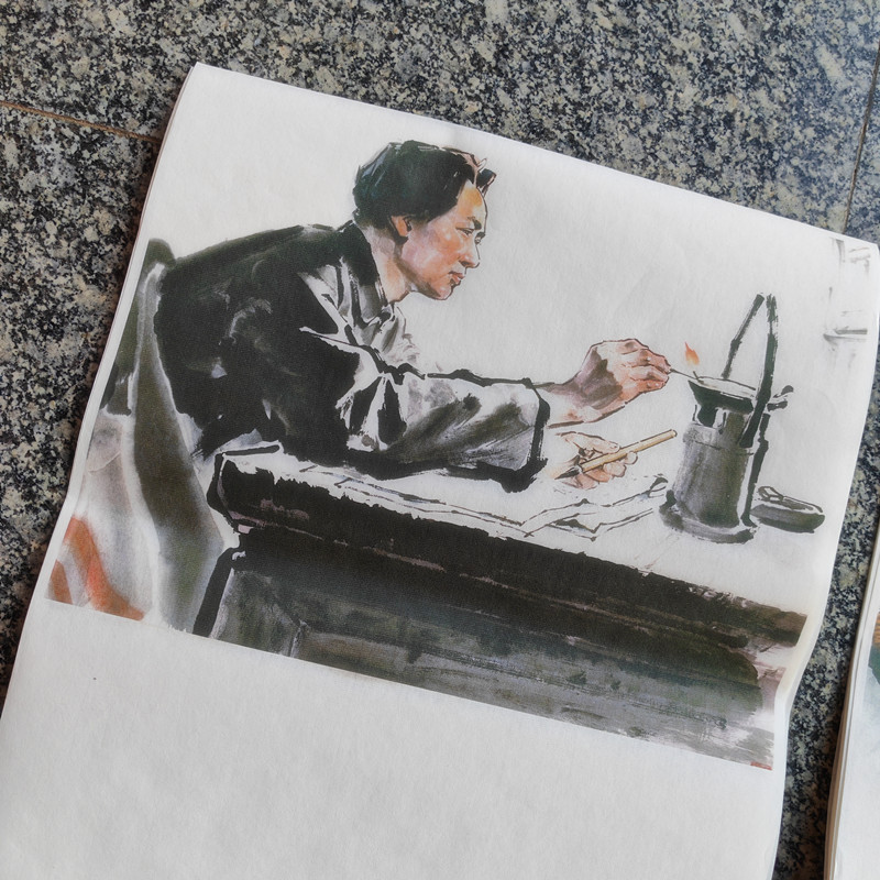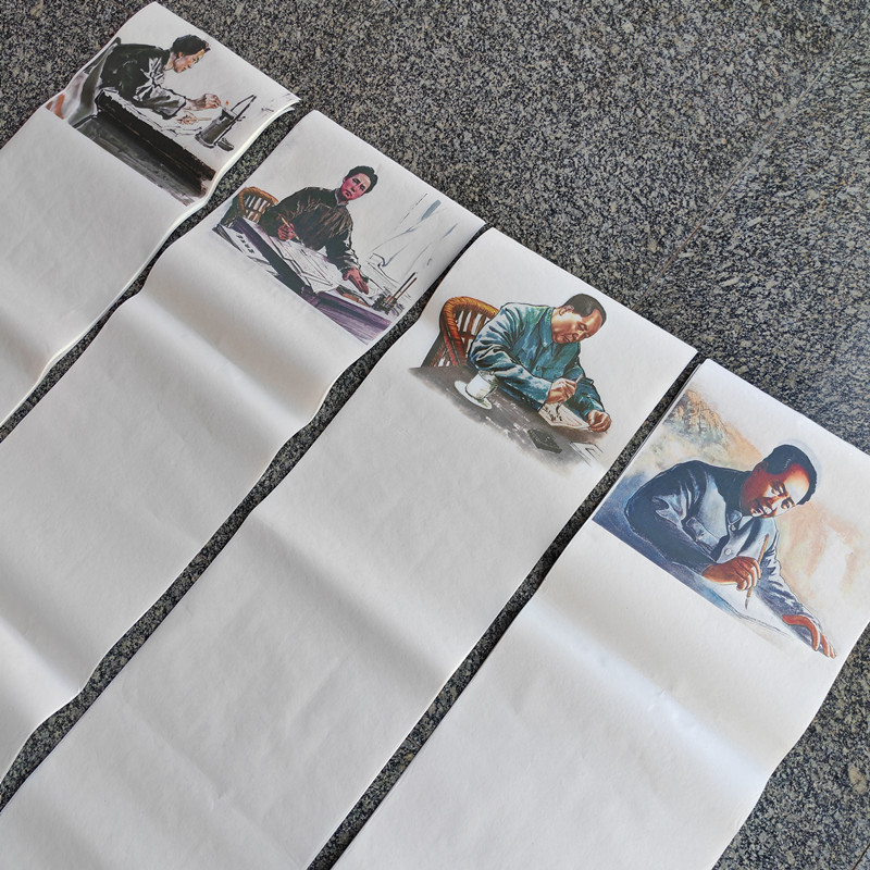 四尺对开毛体四条屏宣纸毛泽东主席头像竖式七八分熟楷书行草篆隶