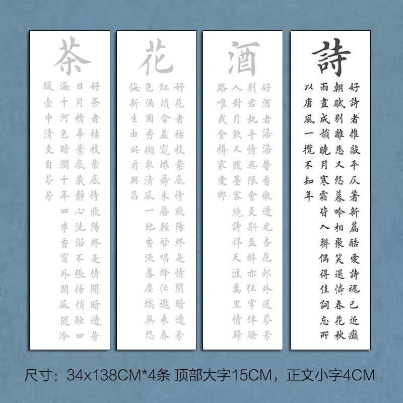 诗酒花茶四条屏描红宣纸田英章欧体楷书临摹描摹书法创作四尺对开